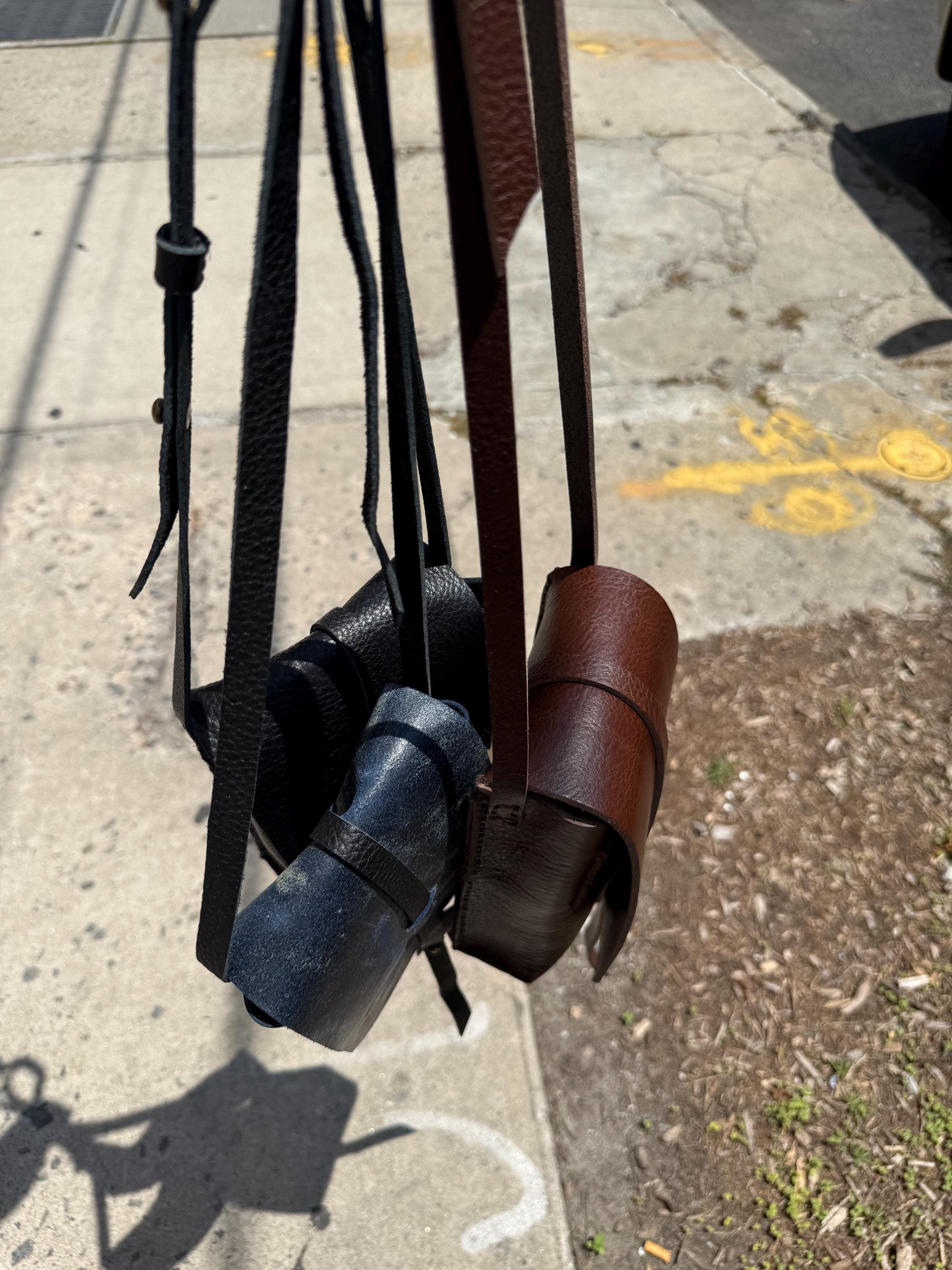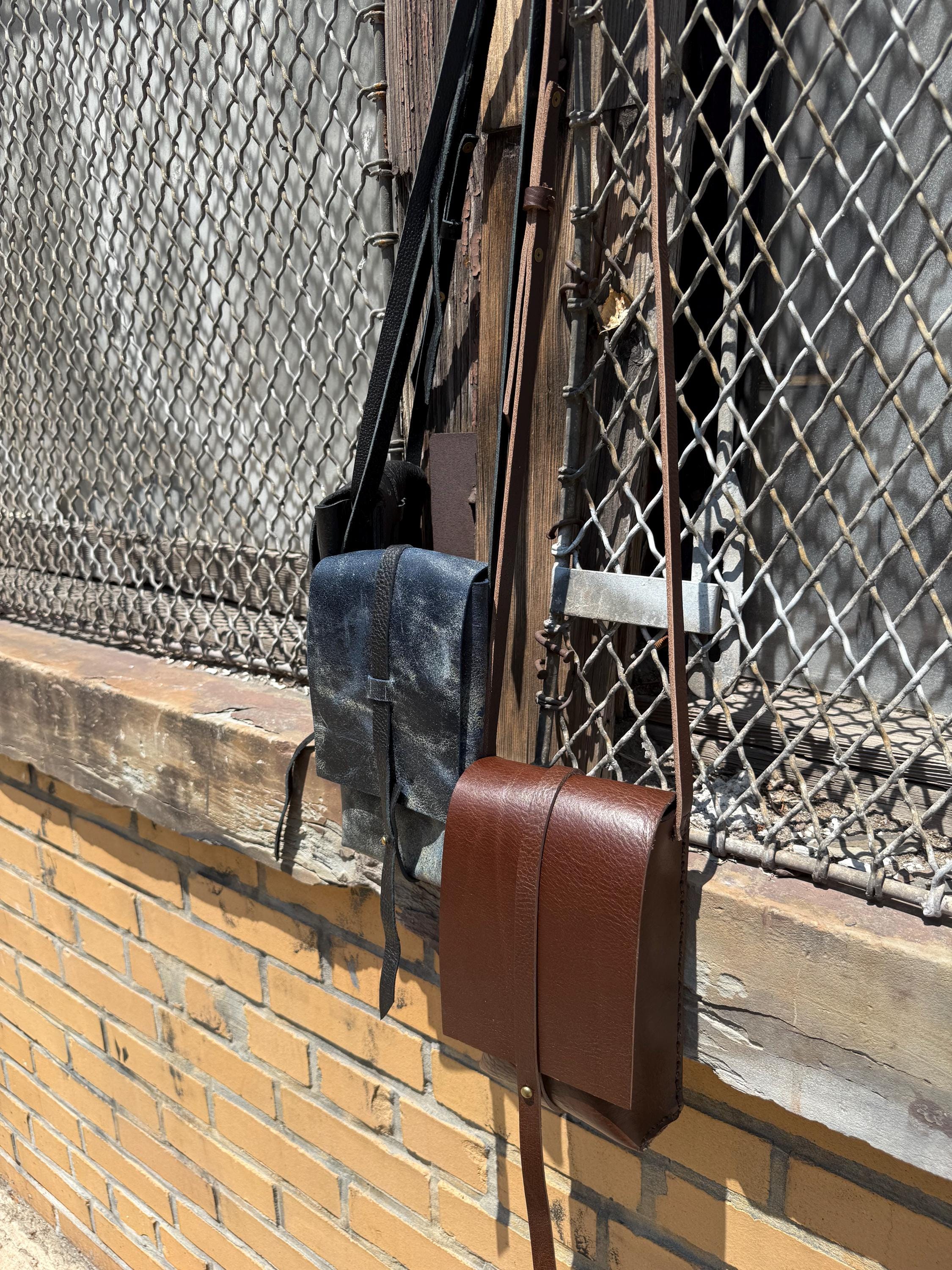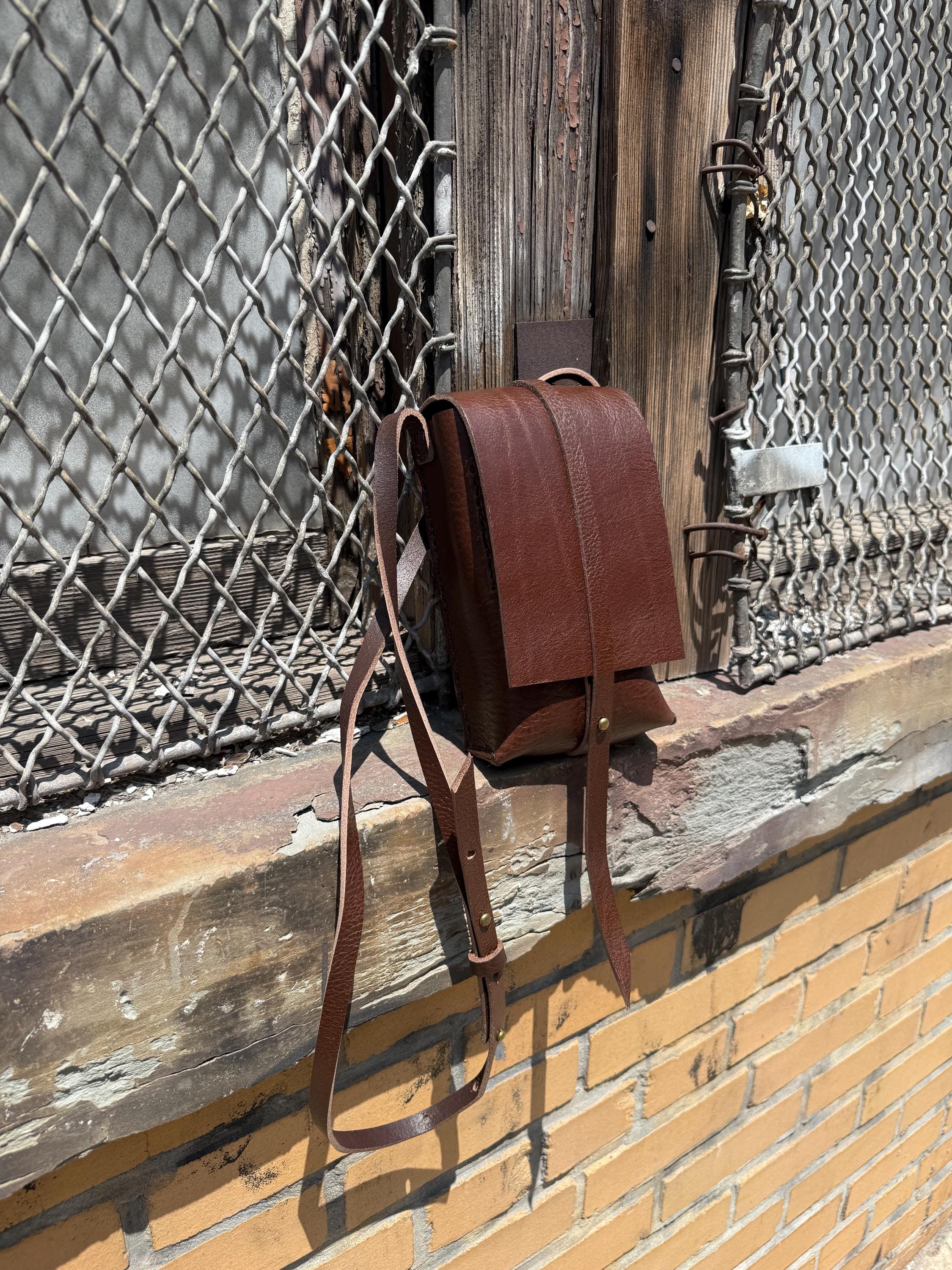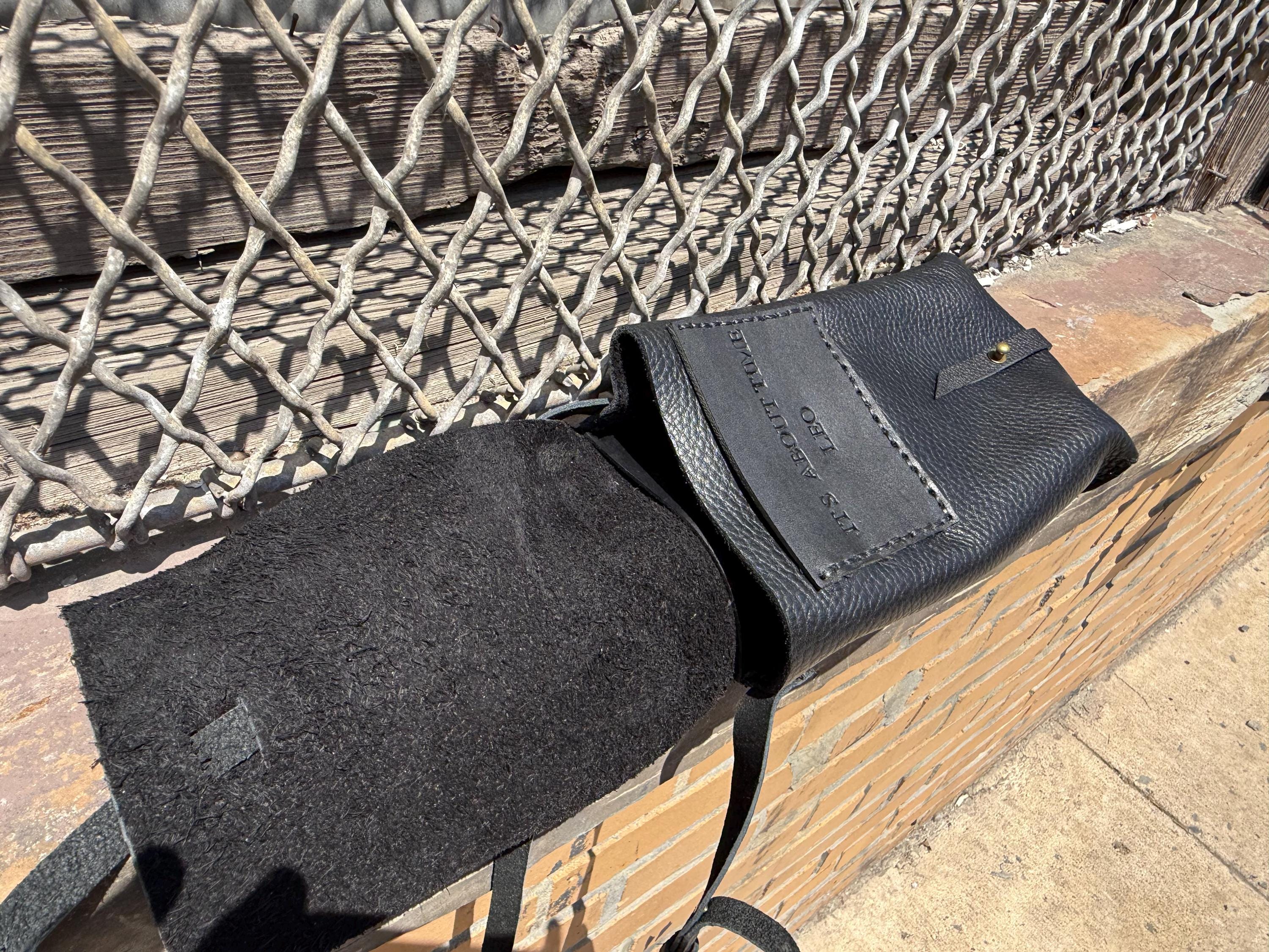 Handmade leather mini bag case for iPhone 17 plus. Bag features a pocket under flap, sleeve separator inside the bag, adjustable cross body strap, stud closure. Hand sewn in whatever leather you choose. and chocolate. Stud closure makes it easy in and out but can be made with many types of closures. As always all of our products are made from scratch without machines glues or lining 100% by humans hands. Made for you at the time of your order in NYC.