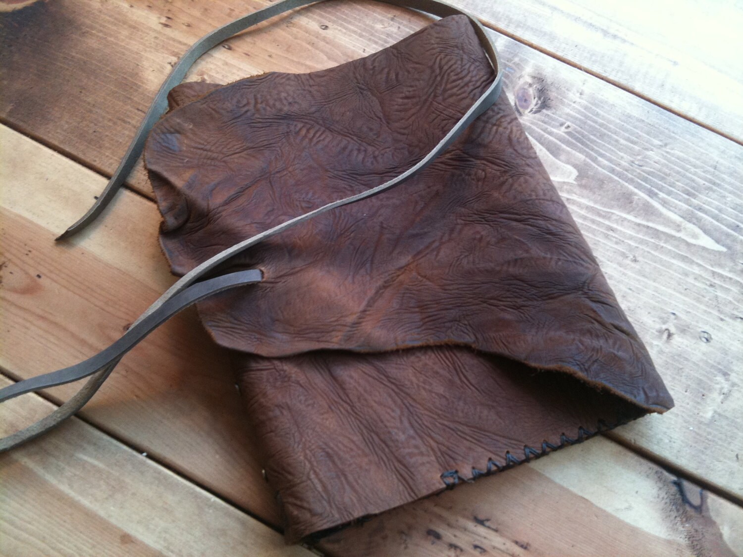 This as in all of our products is hand cut hand punched hand stitched with the same leather weight I use on my bags. It is made without the use or help of electricity, machines, robots, glue or paint or lining. Its 100 % thick natural leather sewn by hand made in New York city, USA.